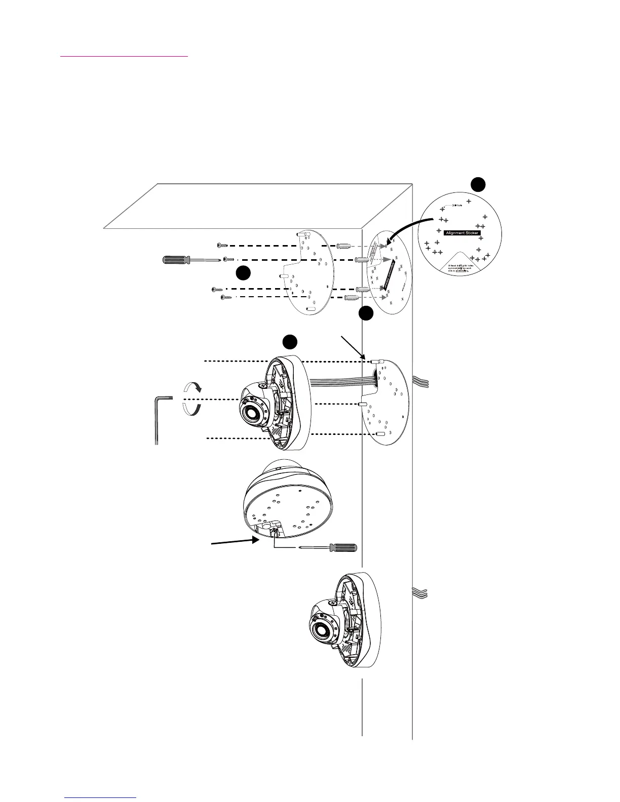 1. Attach the supplied alignment sticker to the wall.