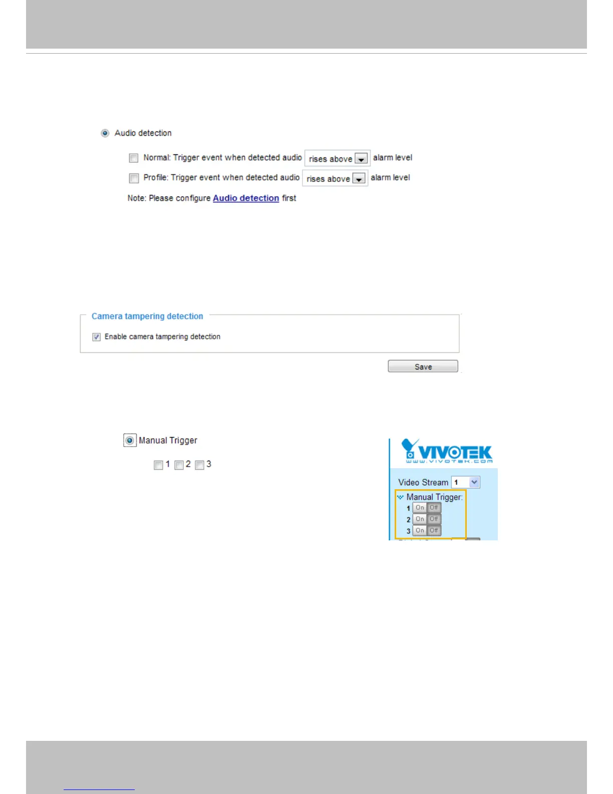 This option allows the Network Camera to trigger when the camera detects that is is being tampered