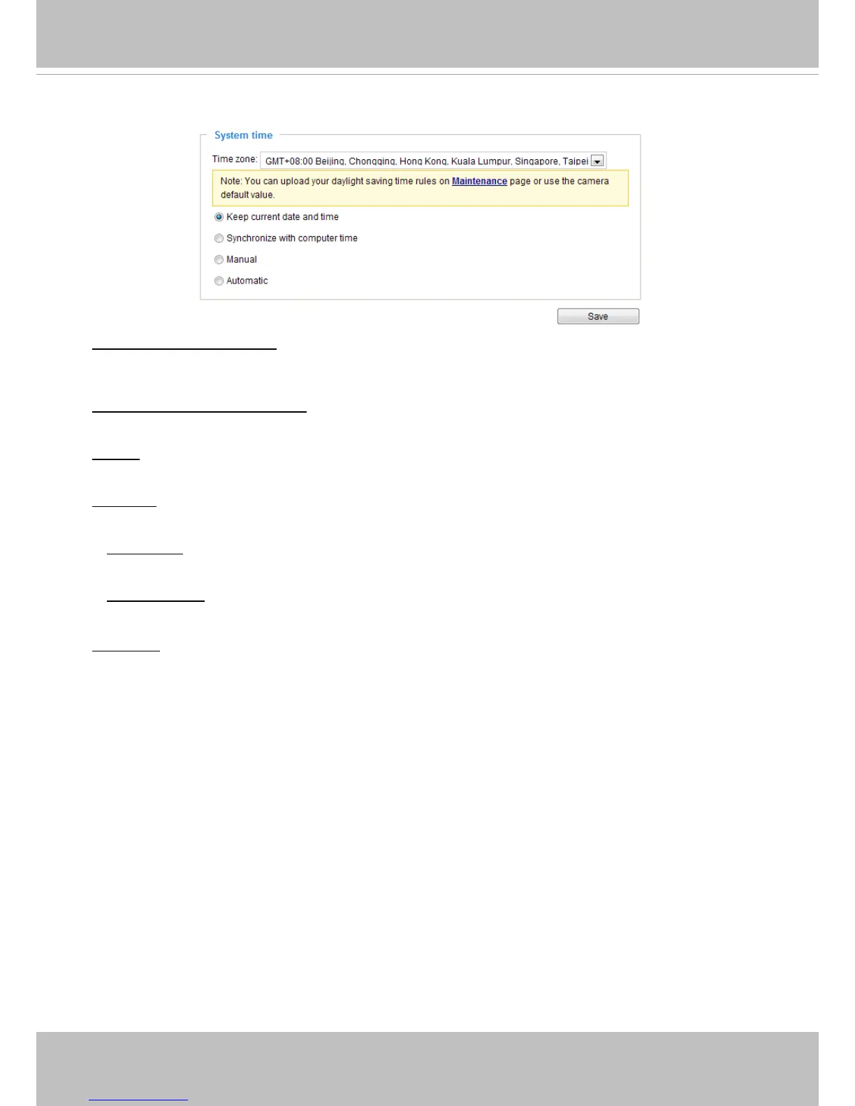 Manual: The administrator can enter the date and time manually. Note that the date and time format are