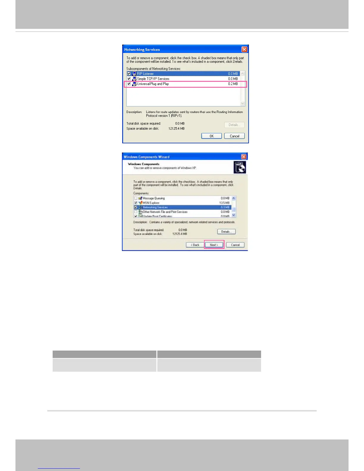 4. In the Networking Services dialog box, select Universal Plug and Play and click OK.