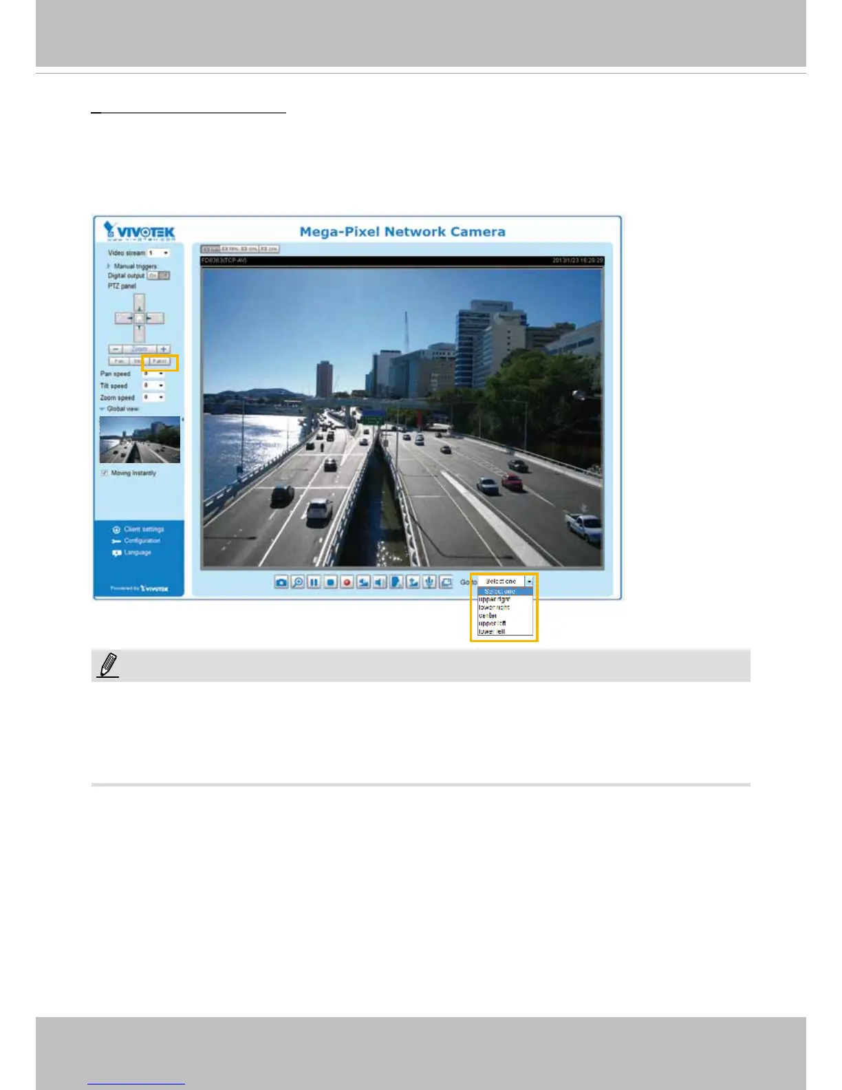 The Preset Positions will also be displayed on the home page. Select one from the Go to drop-down