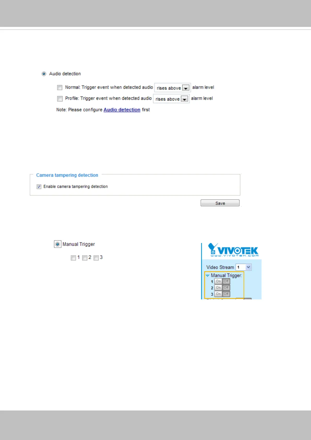 This option allows the Network Camera to trigger when the camera detects that is is being tampered