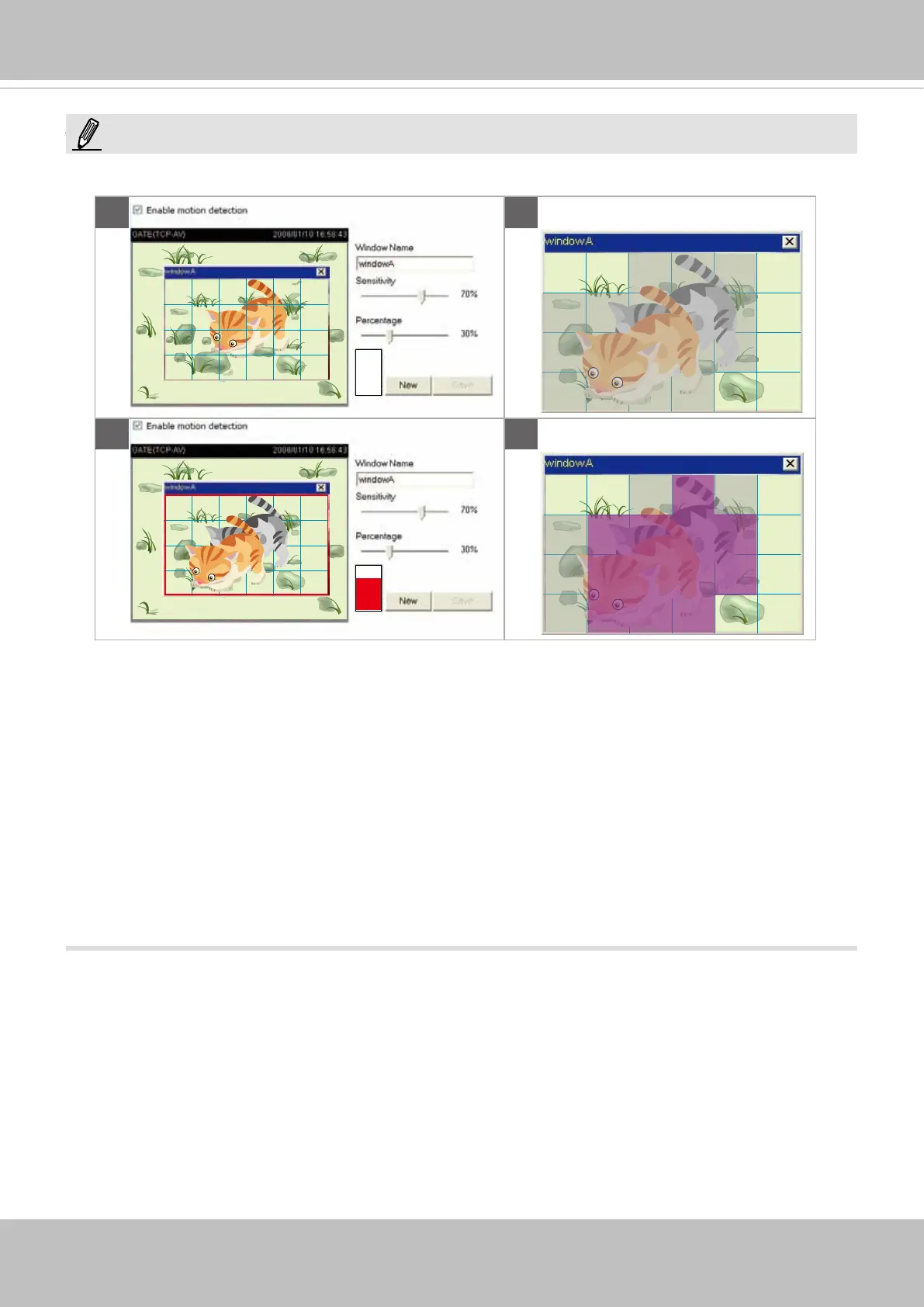 There are two motion detection parameters: Sensitivity and Percentage. In the illustration above,