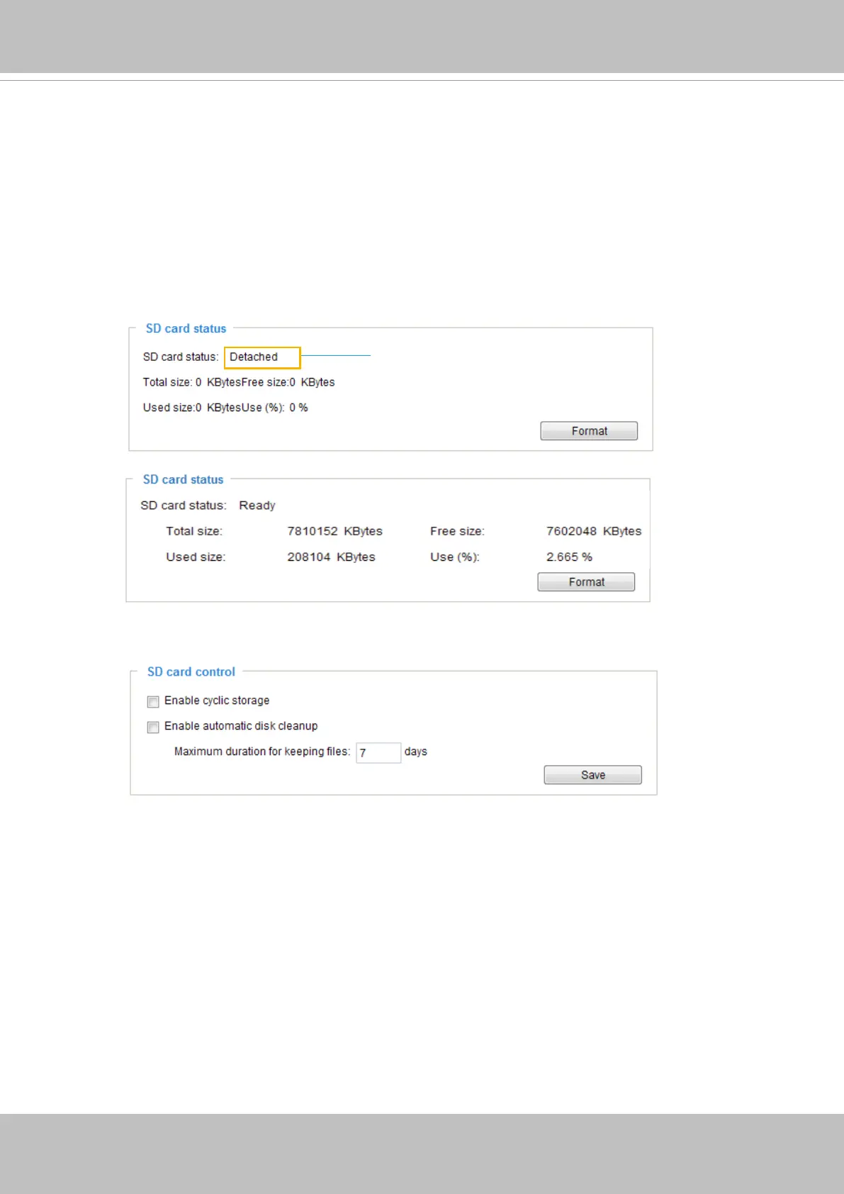 For example, if you enter “7 days”, the recorded les will be stored on the SD card for 7 days.