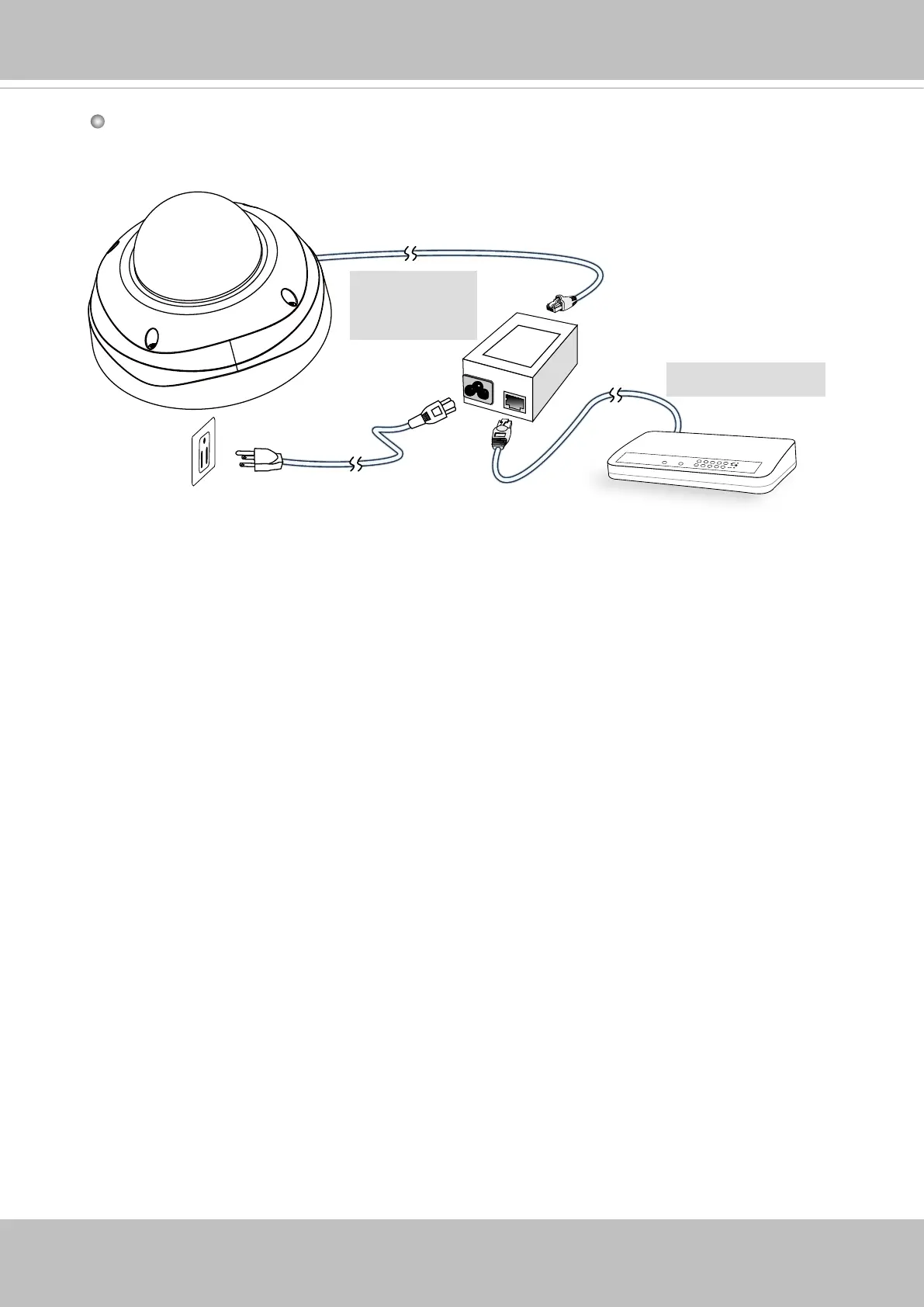 Use a PoE power injector (optional) to connect between the Network Camera and a