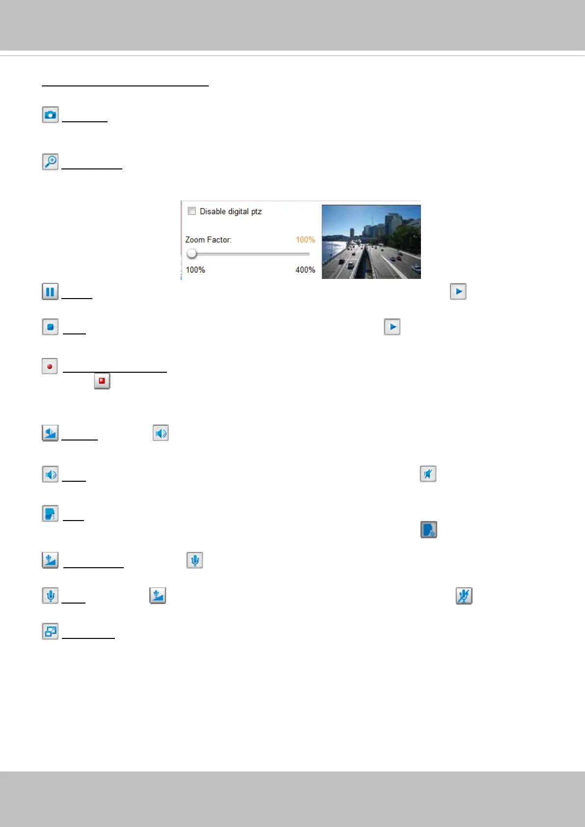 Video and Audio Control Buttons: Depending on the Network Camera model and Network Camera