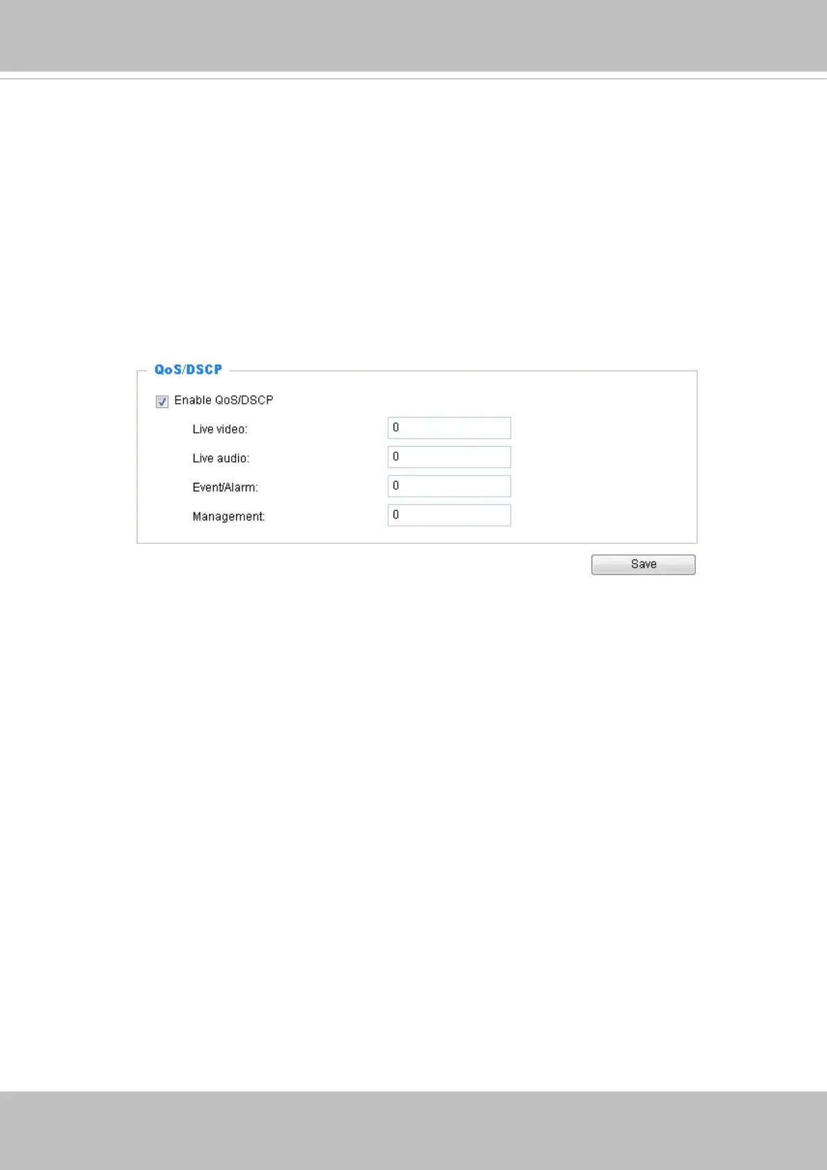Below are the setting options of DSCP (DiffServ Codepoint). Specify the DSCP value for each