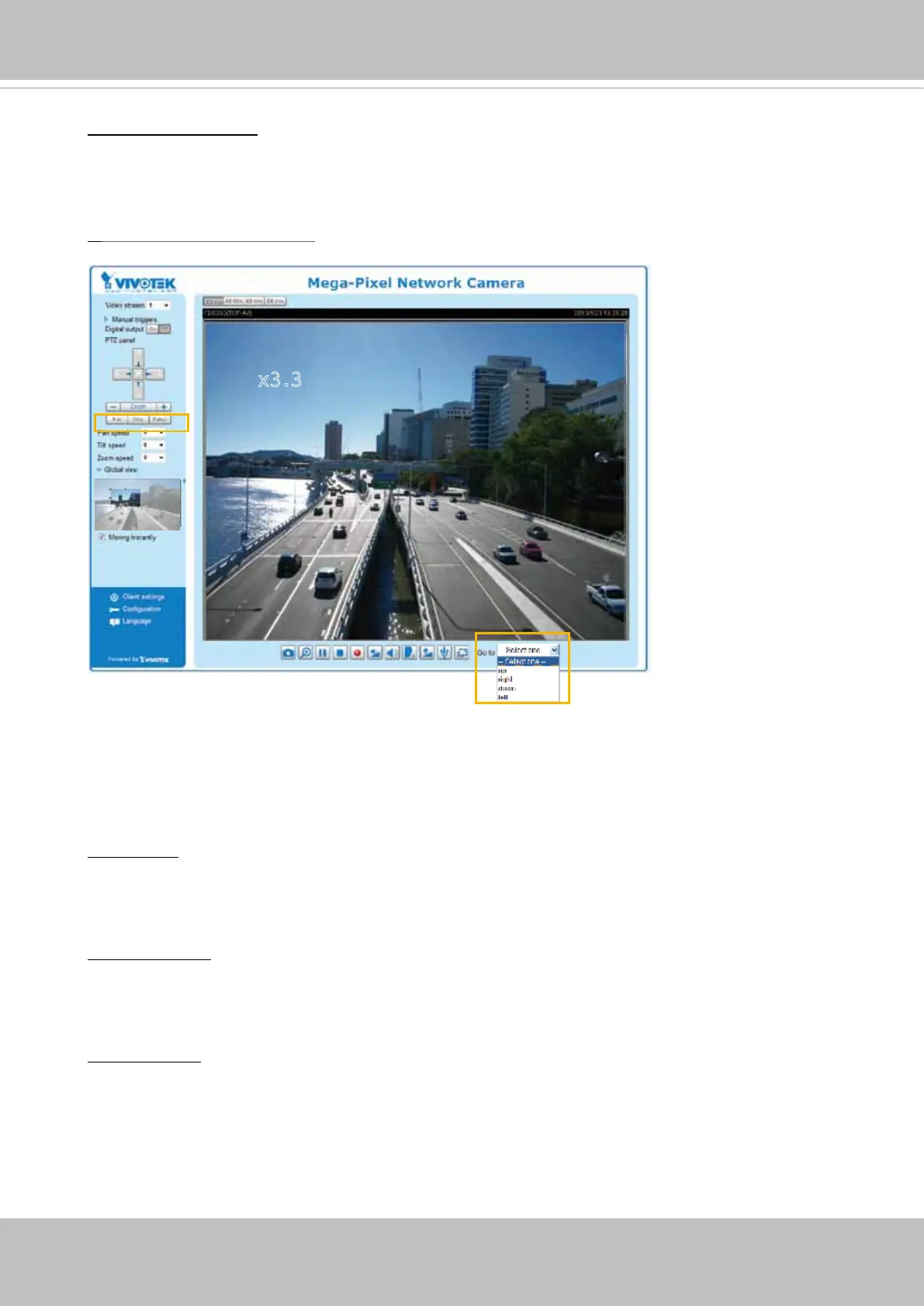 ■ The e-Preset Positions will also be displayed on the home page. Select one from the drop-down