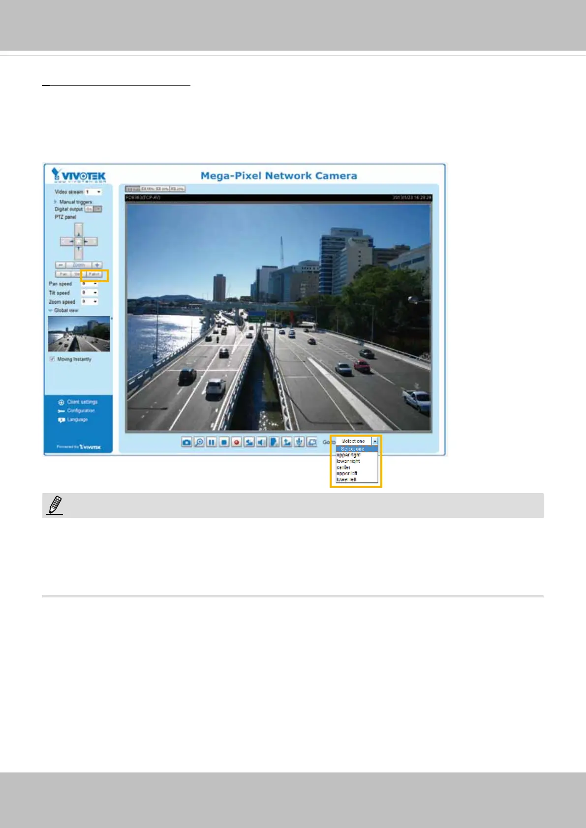 The Preset Positions will also be displayed on the home page. Select one from the Go to drop-down