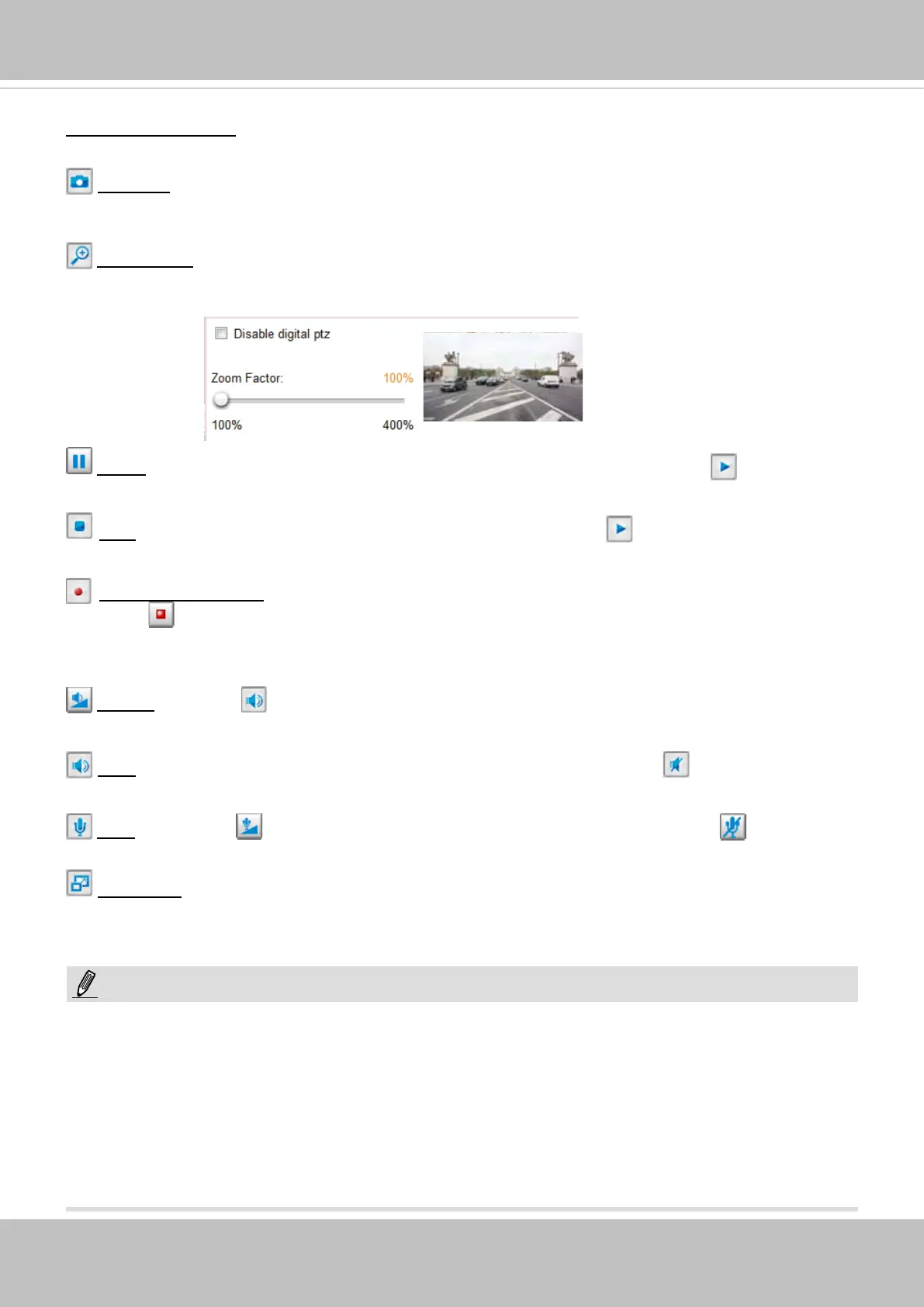 Video Control Buttons: Depending on the Network Camera model and Network Camera conguration,