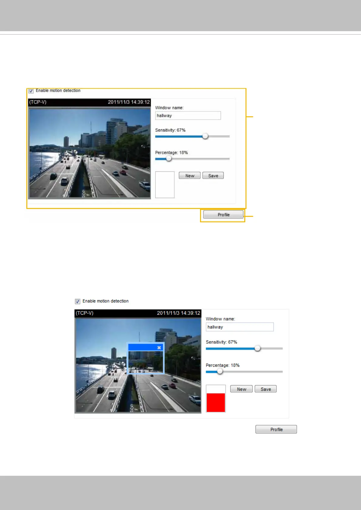 red bar rises. Meanwhile, the motion detection window will be outlined in red. Photos or videos can be
