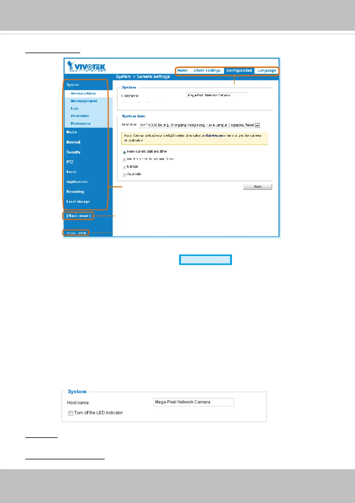 This section explains how to congure the basic settings for the Network Camera, such as the
