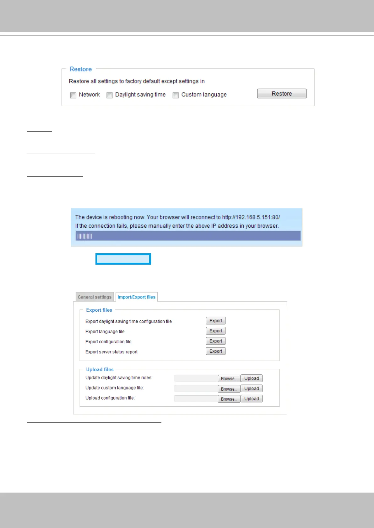 This feature allows you to Export / Update daylight saving time rules, custom language le, conguration