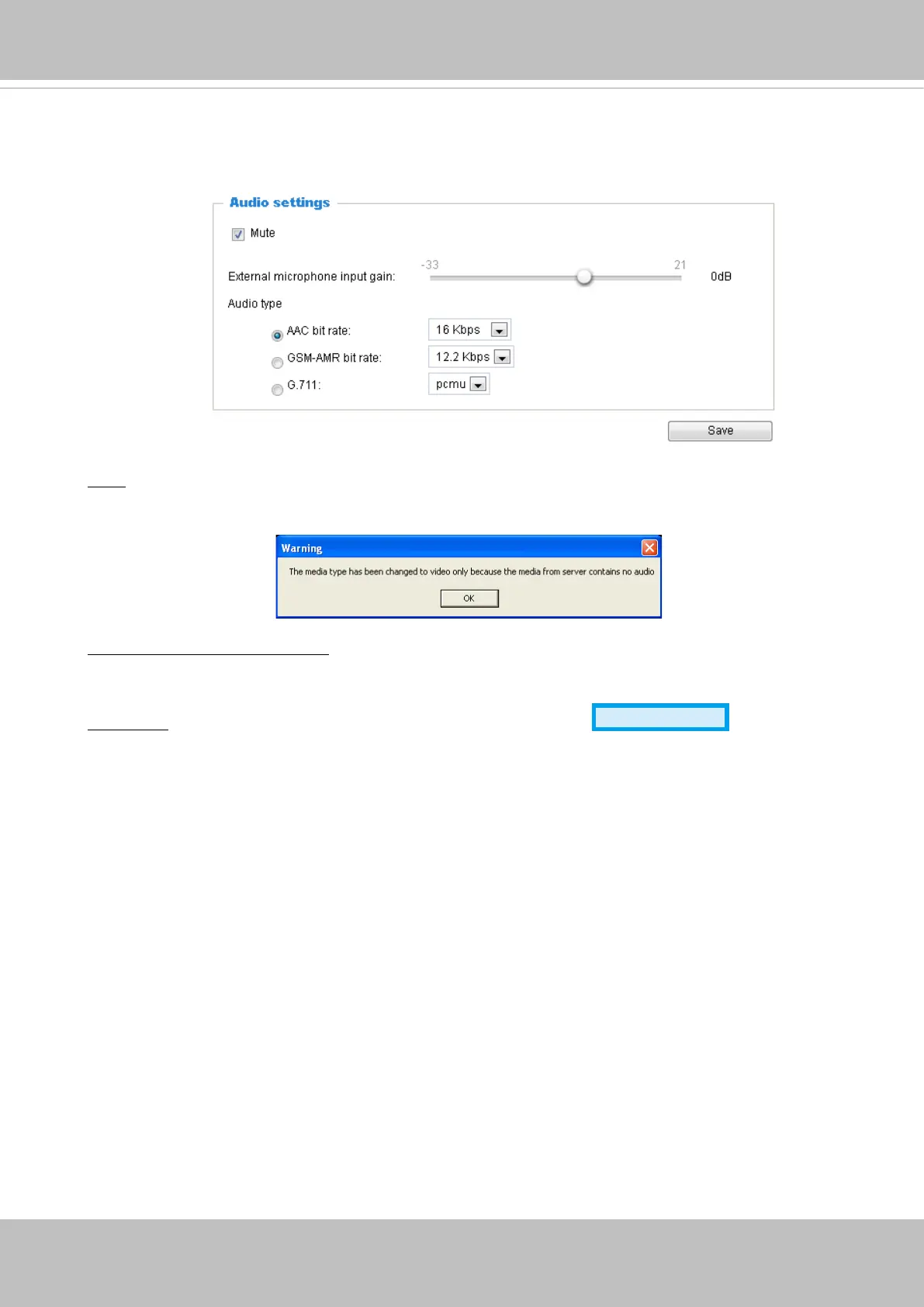 Audio type: Select audio codec AAC or GSM-AMR and the bit rate