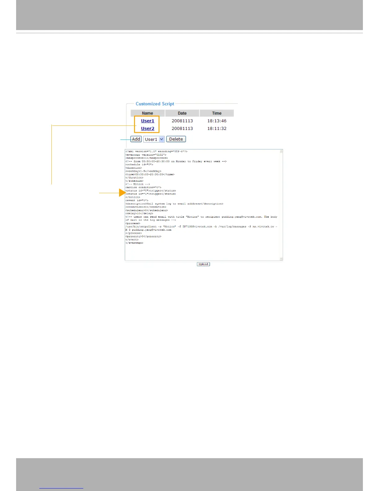 This function allows you to upload a sample script (.xml le) to the webpage, which will save your time on