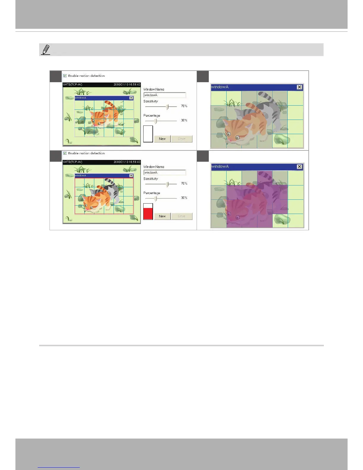There are two motion detection parameters: Sensitivity and Percentage. In the illustration above,