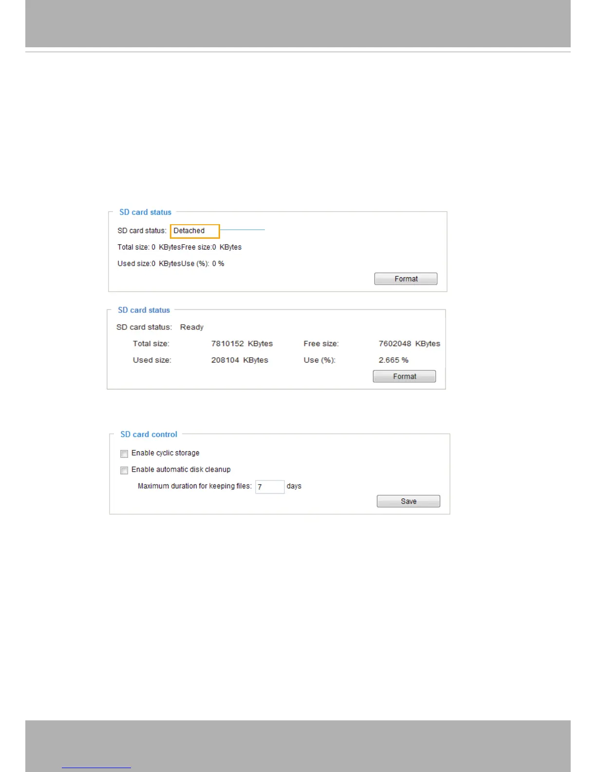 For example, if you enter “7 days”, the recorded les will be stored on the SD card for 7 days.