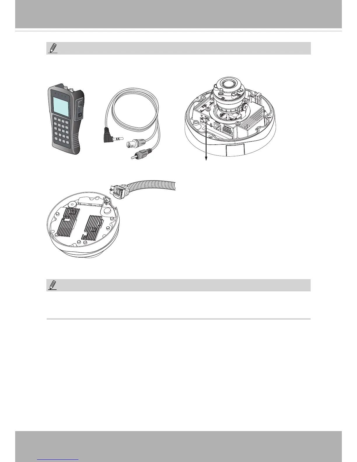 Use the included AV cable to connect to a camera tester or LCD monitor to begin initial