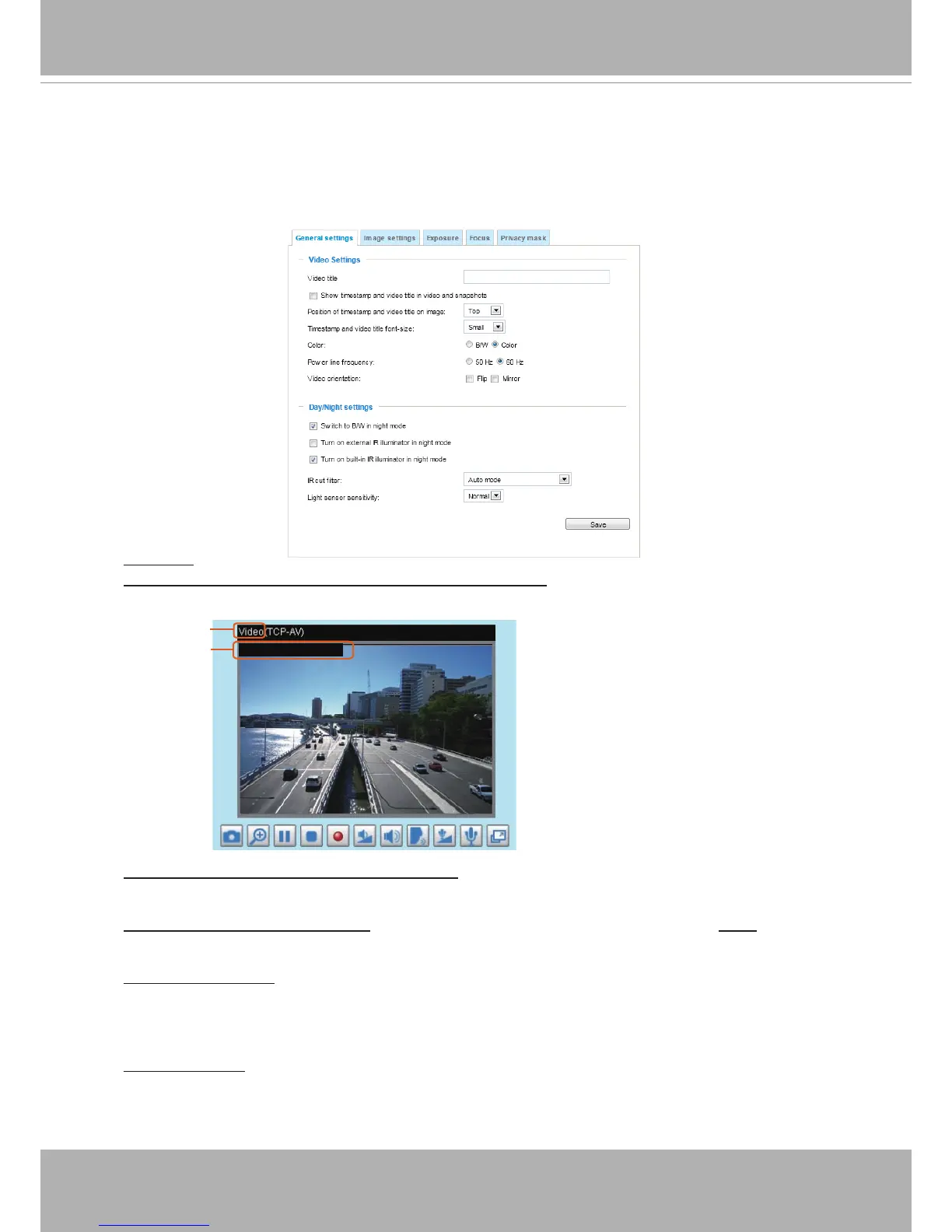 Position of timestamp and video title on image: Select to display time stamp and video title on the