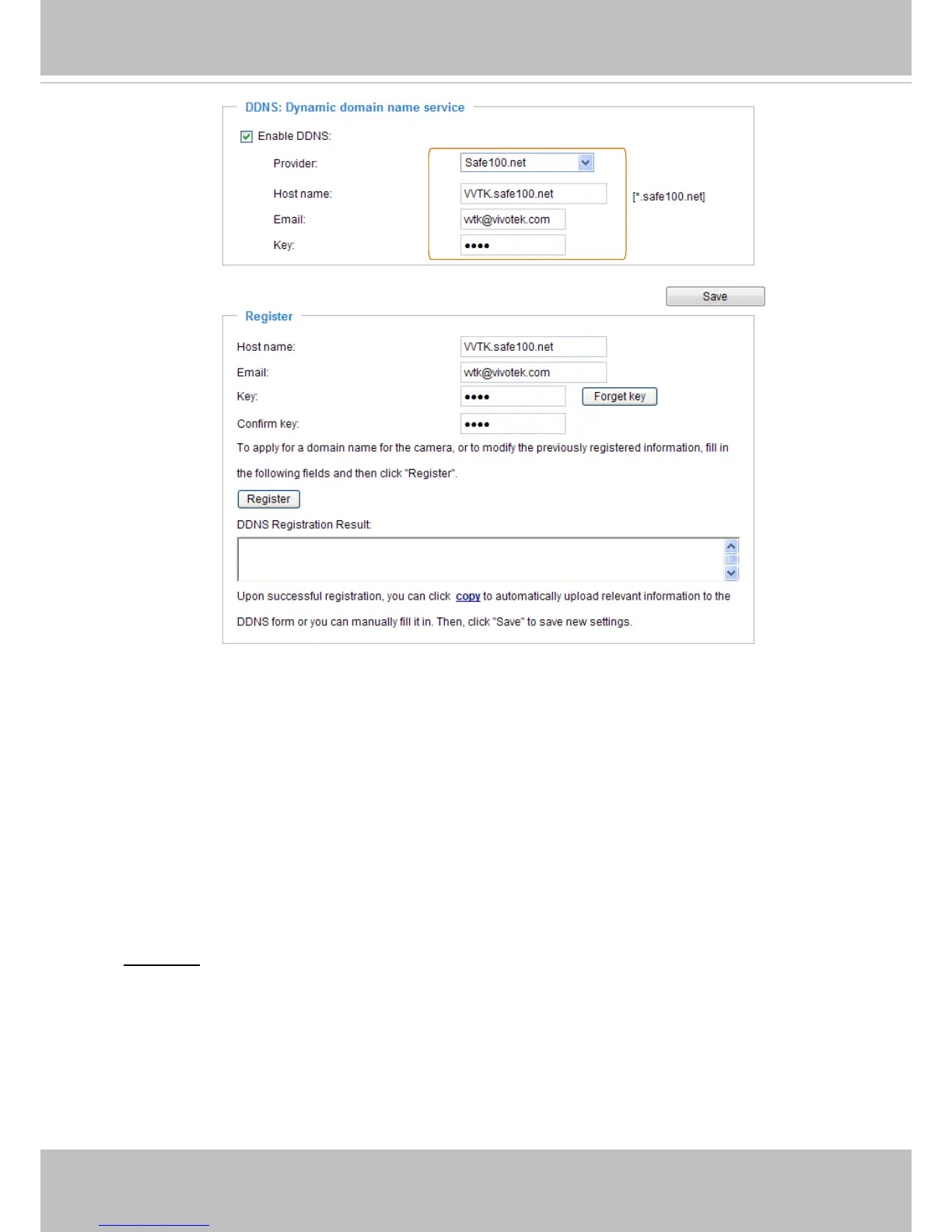 2. In the Register column, ll in the Host name, Email, Key, and Conrm Key; then click Register.