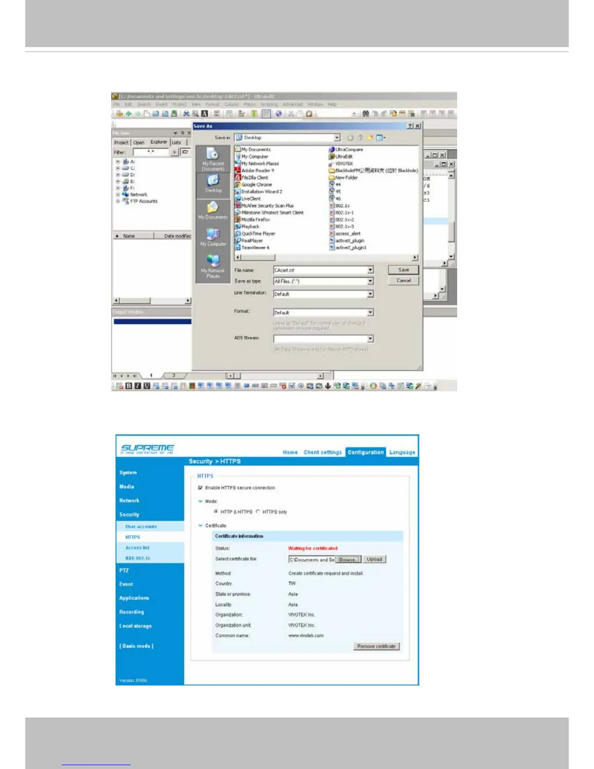 10. Return to the original rmware session, use the Browse button to locate the crt certicate le,