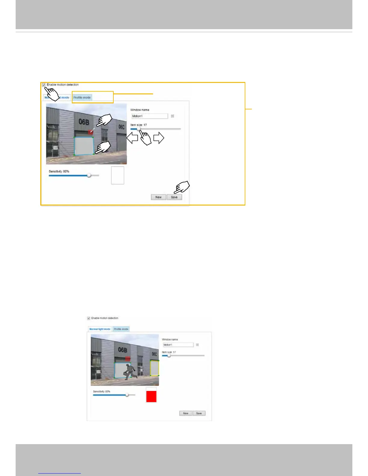 1. Click New to add a new motion detection window.