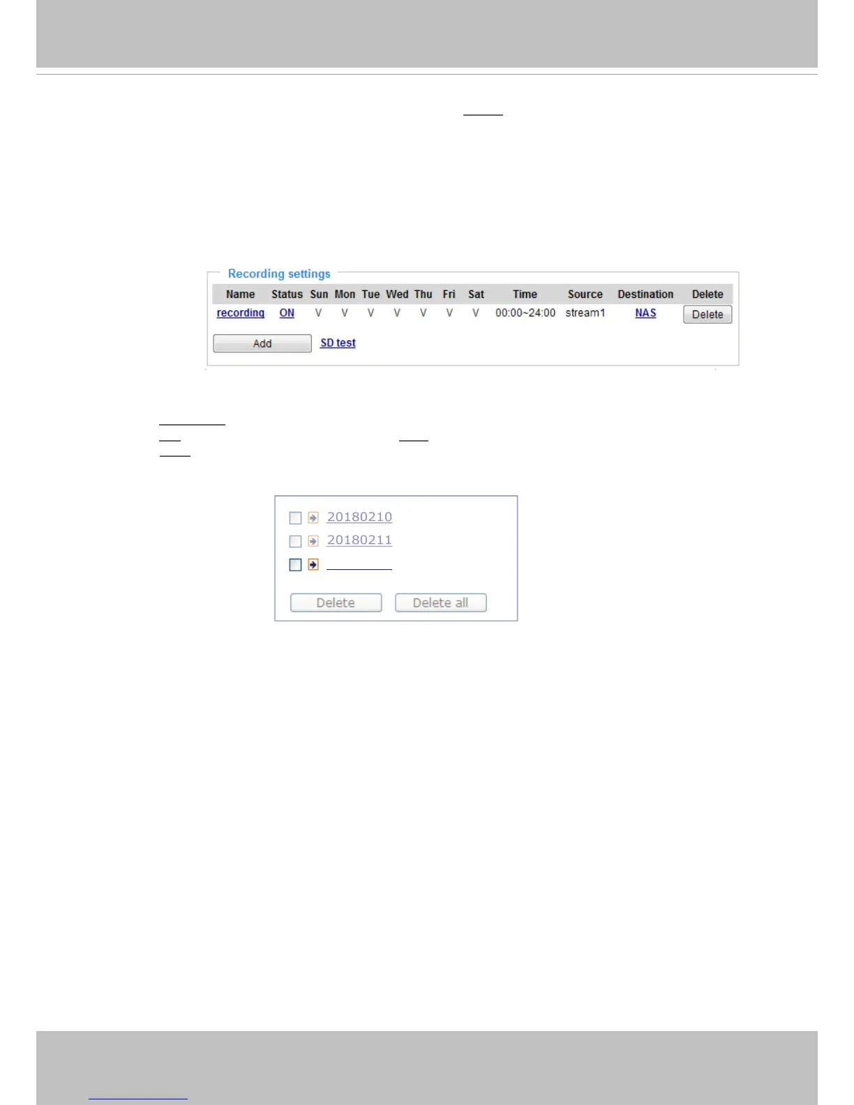 ■ Click NAS (Destination): Opens the le list of recordings as shown below. For more information