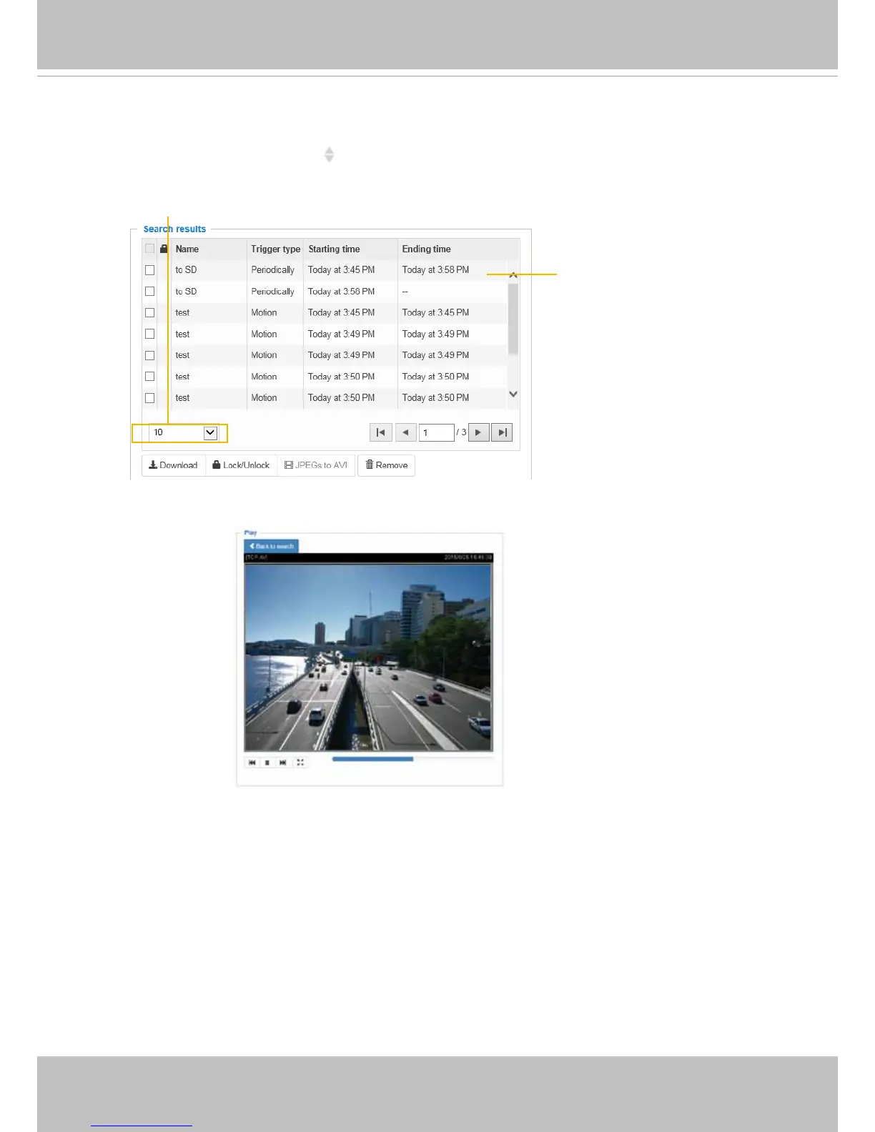The following is an example of search results. There are four columns: Trigger time, Media type,