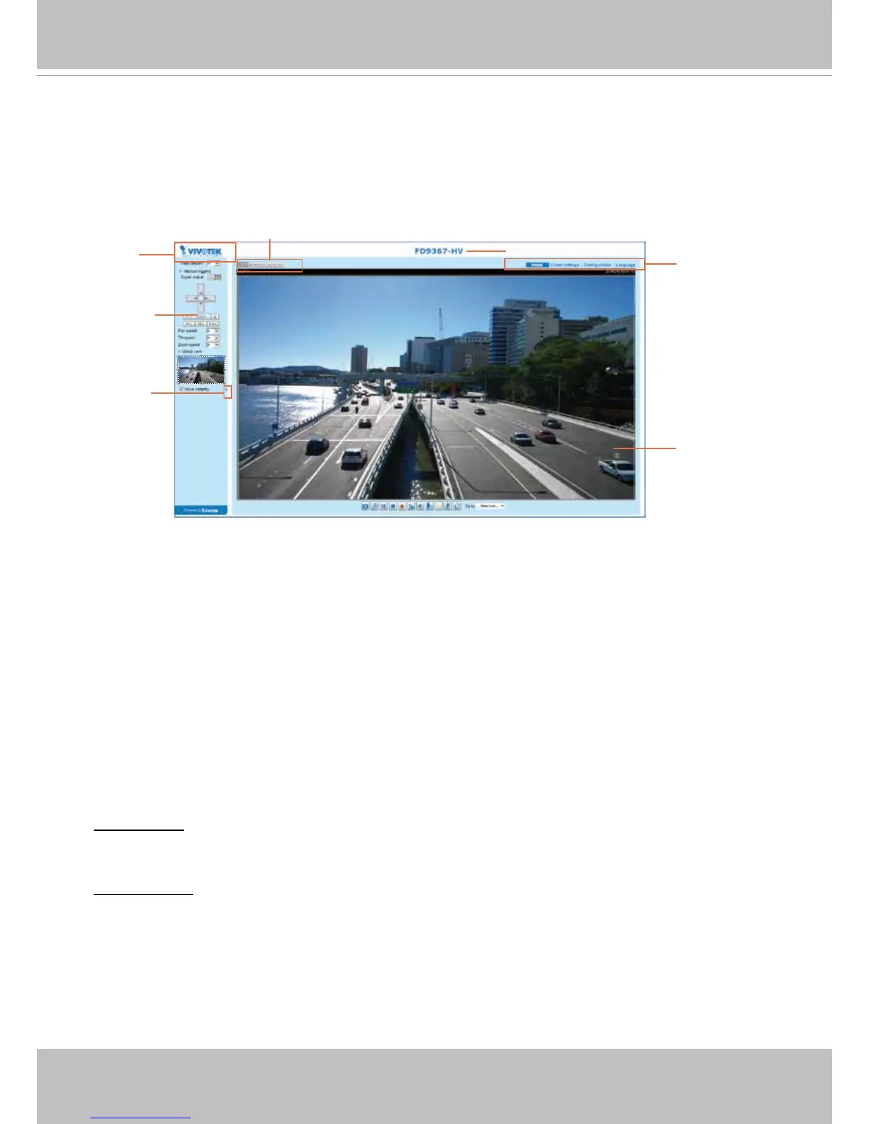 VIVOTEK INC. Logo, Host Name, Camera Control Area, Configuration Area, Menu, and Live