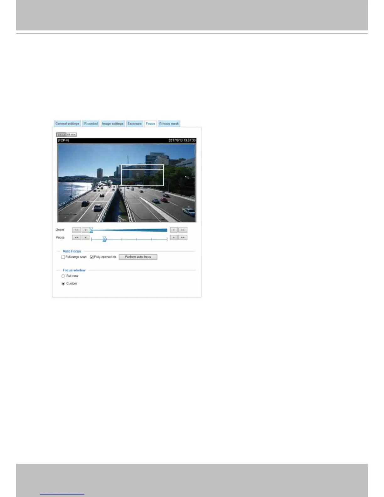 Focus here refers to the Remote Focus, applicable to Network Cameras that are equipped