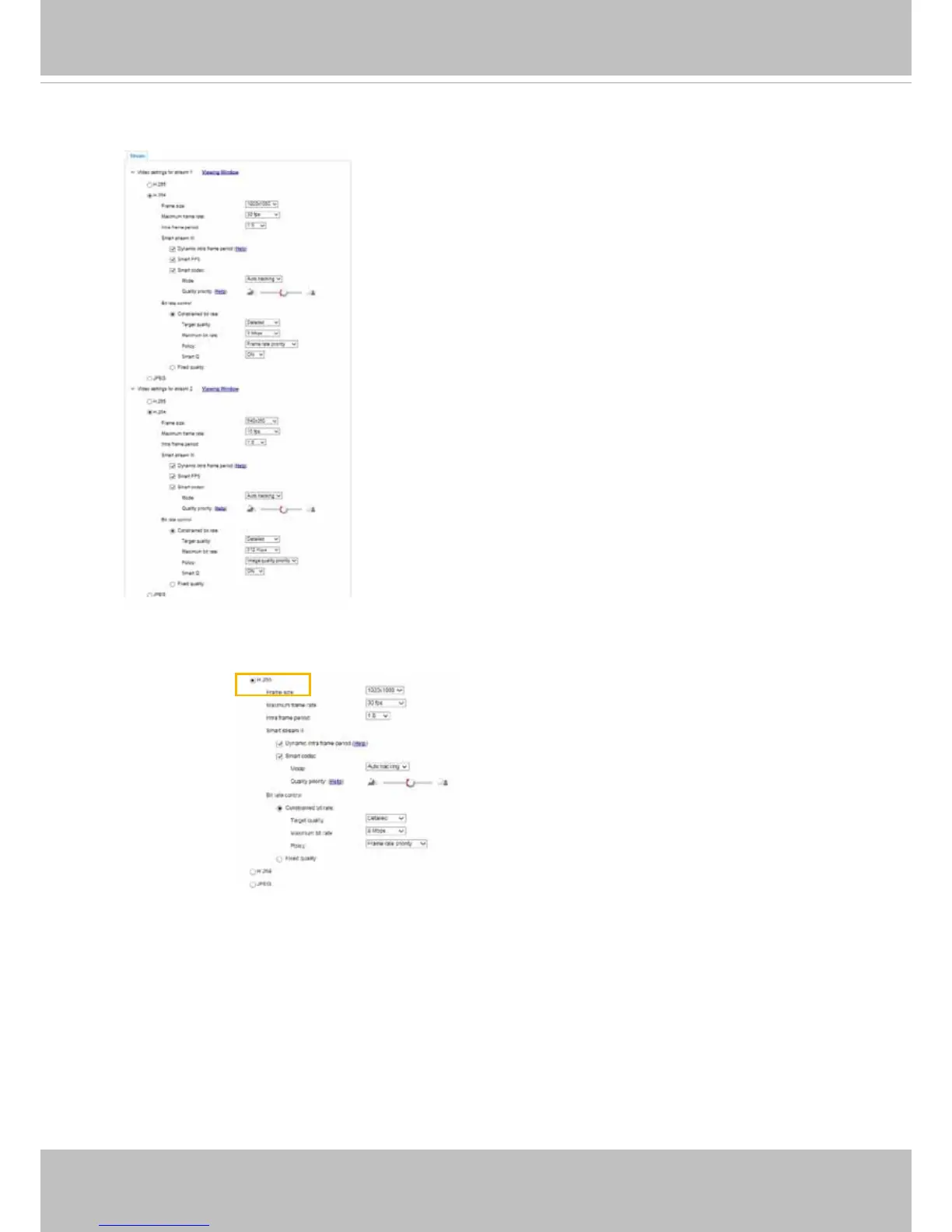 to an NVR. Note that a larger frame size takes up more bandwidth.