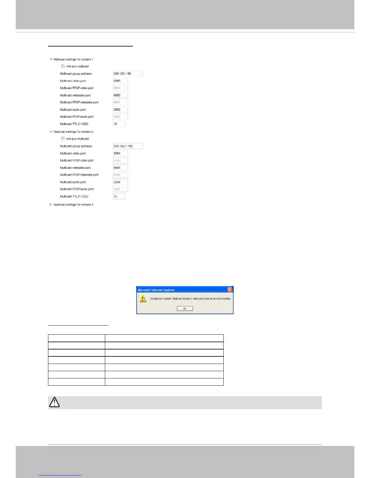 If the multicast RTP video ports are incorrectly assigned, the following warning message will be