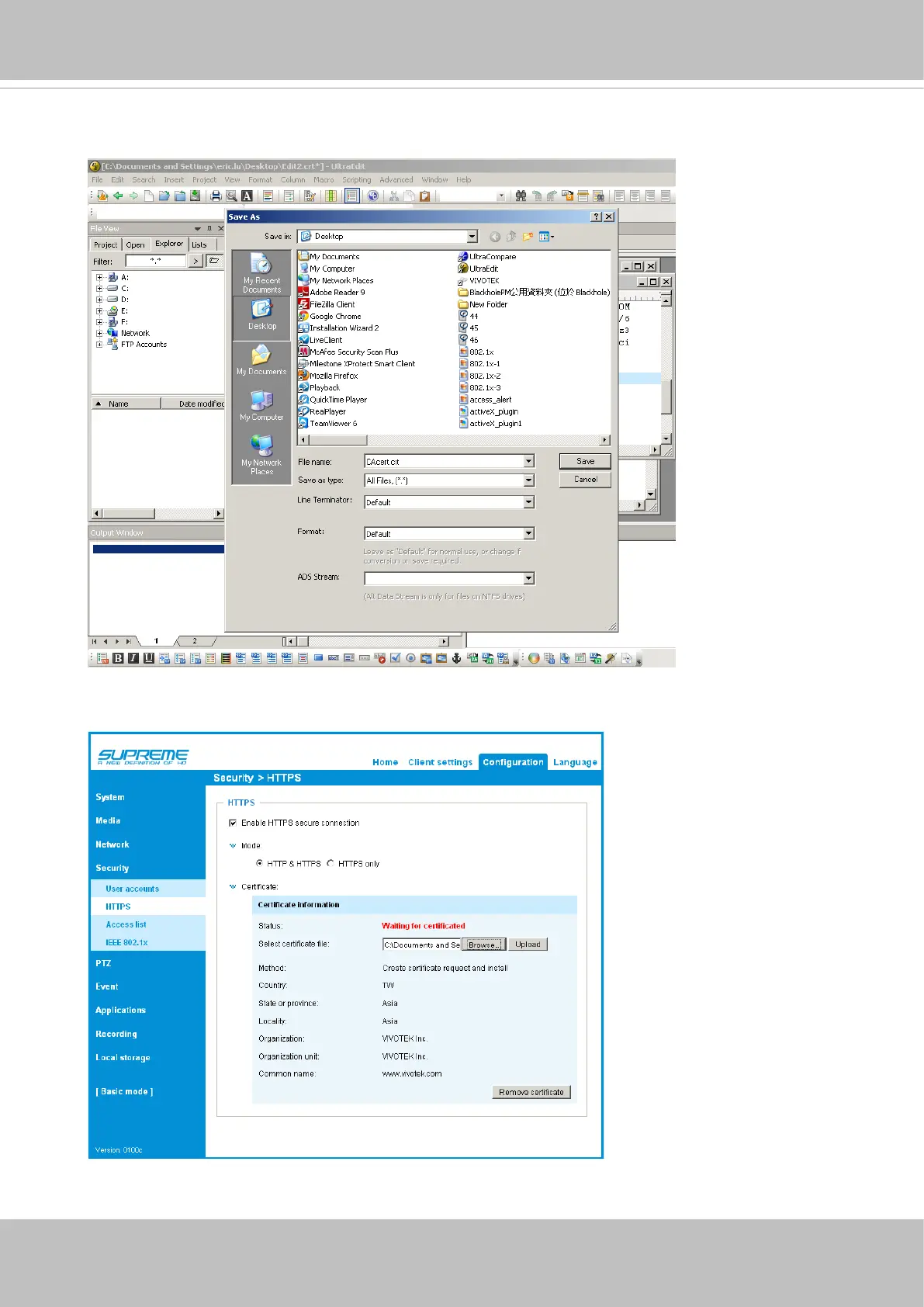 10. Return to the original rmware session, use the Browse button to locate the crt certicate le,