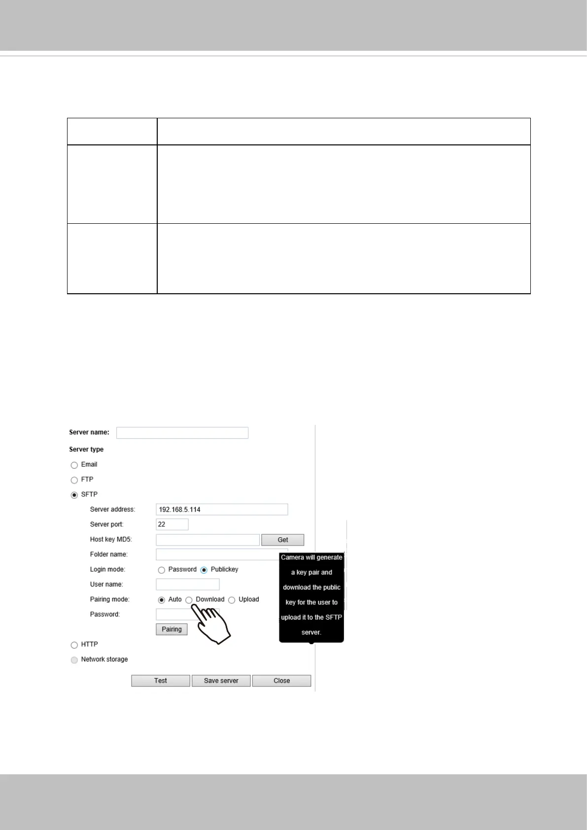 Auto Camera will generate a key pair and auto pair public key with the SFTP