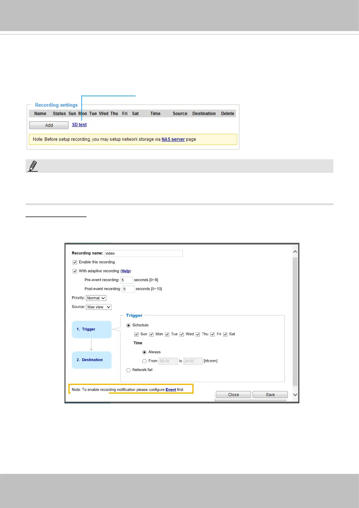 Click Add to open the recording setting window. On this page, you can dene the adaptive recording,