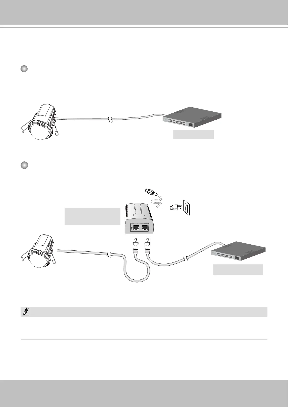Use a PoE power injector (optional) to connect between the Network Camera and a non-