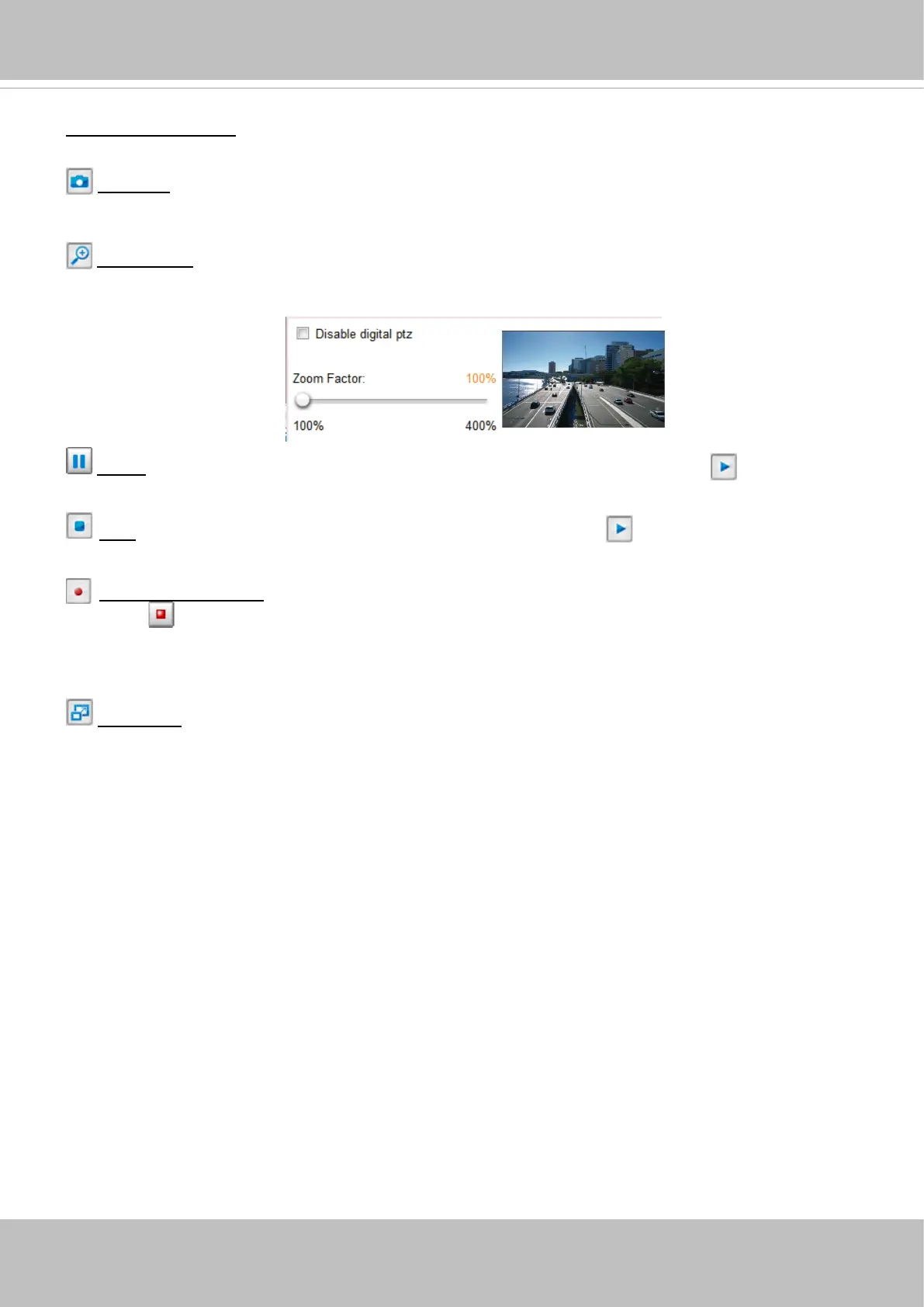 Video Control Buttons: Depending on the Network Camera model and Network Camera conguration,