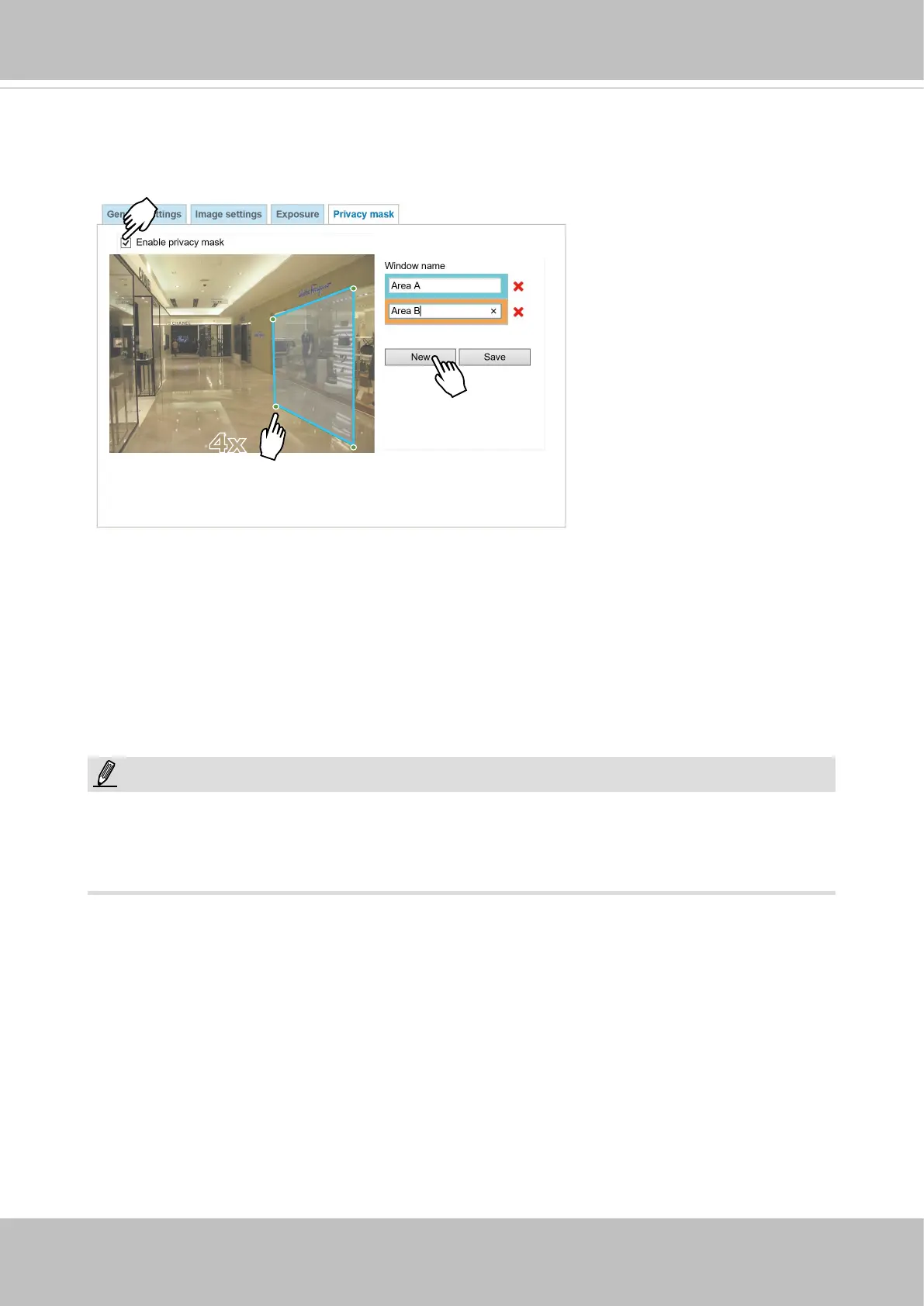 Up to 5 privacy mask windows can be congured on the same screen.