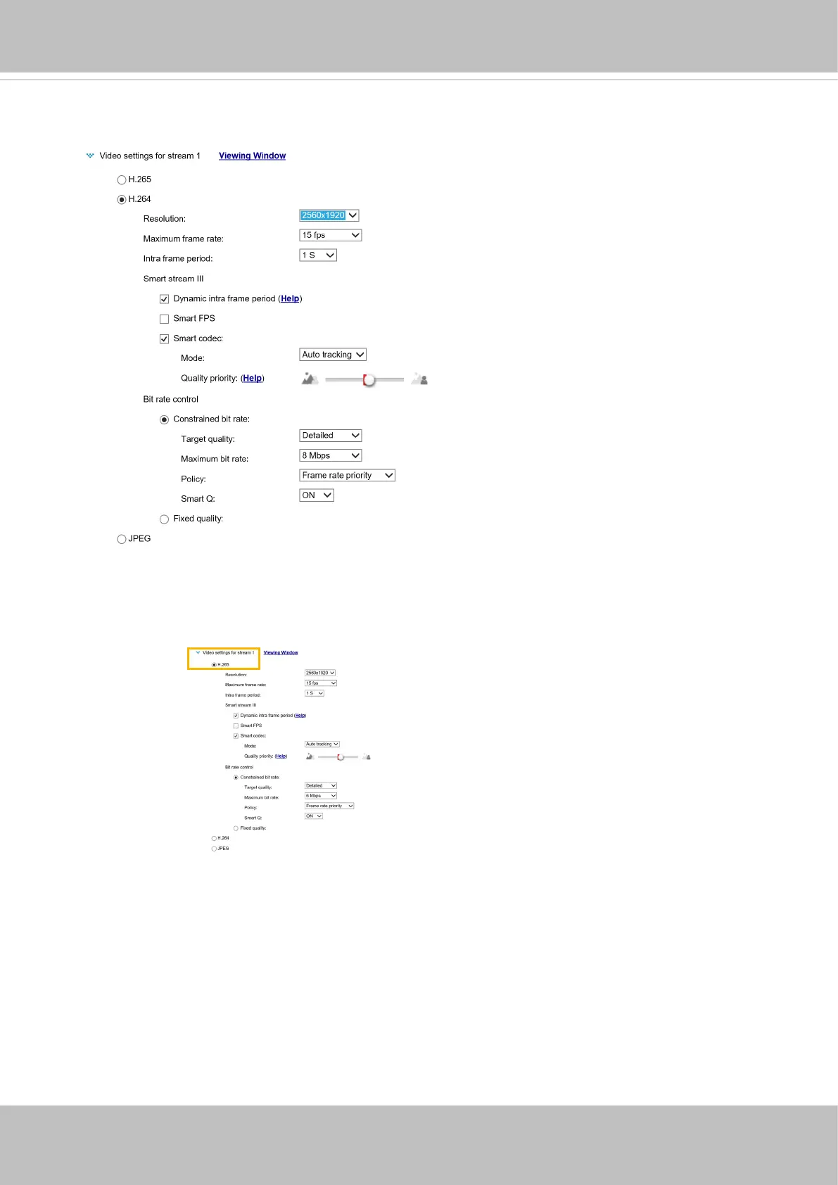 Codec) for real-time viewing. If the H.265 or H.264 mode is selected, the video is streamed via
