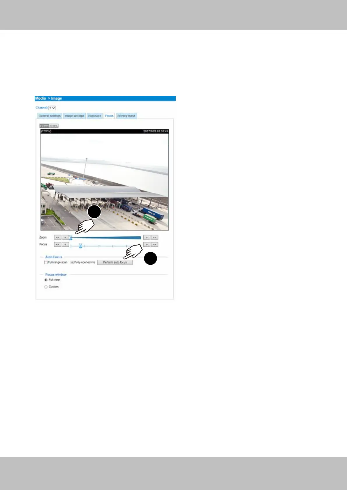 Media > Image > Focus page. You will see a live stream on screen. If preferred, you