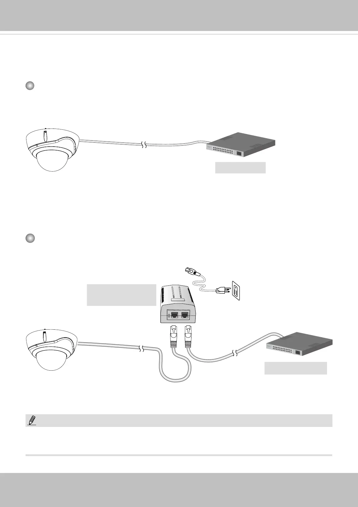 Use a PoE power injector (optional) to connect between the Network Camera and a non-
