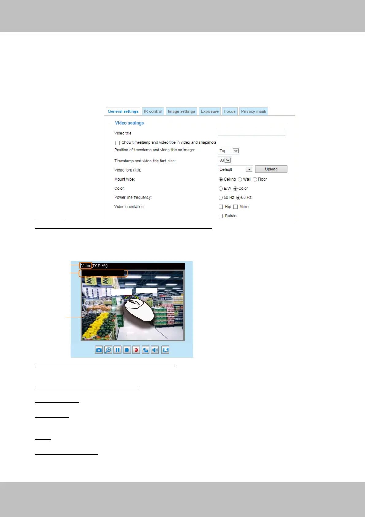 Position of timestamp and video title on image: Select to display time stamp and video title on the