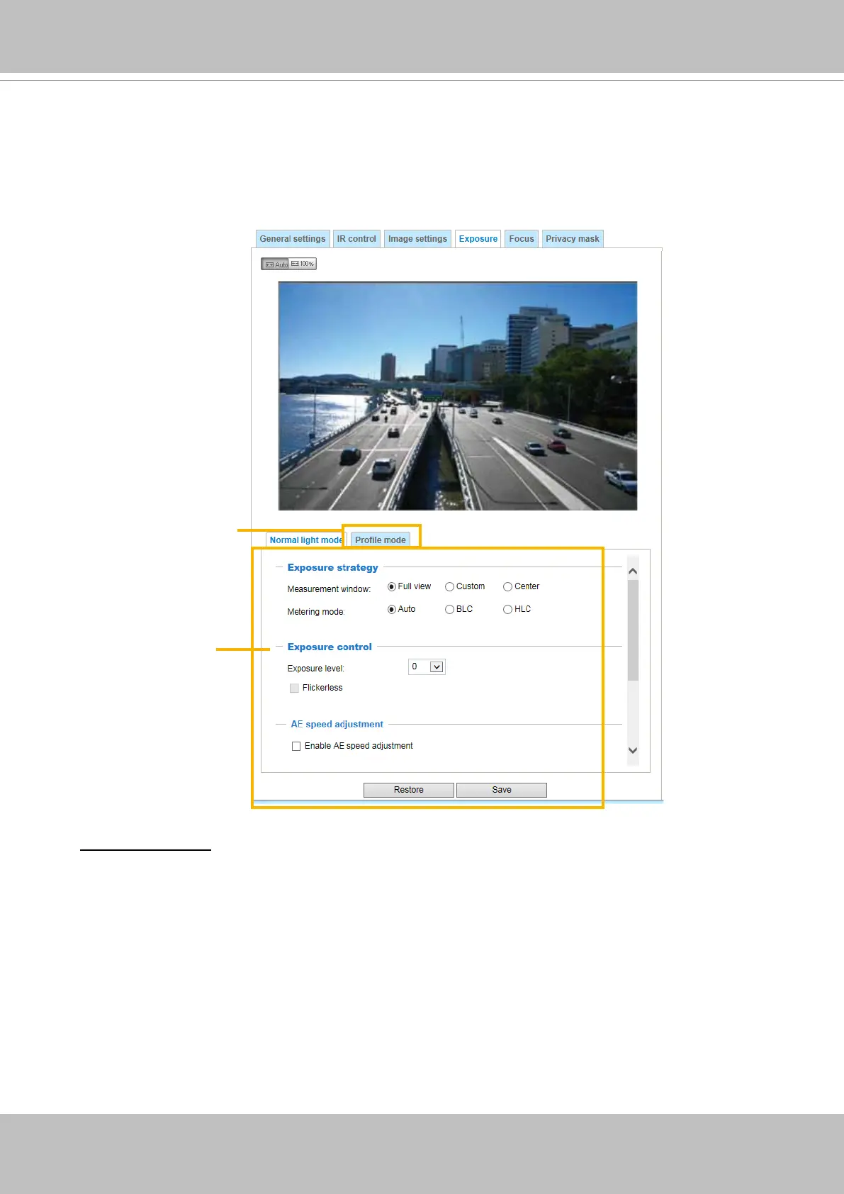 On this page, you can congure the Exposure measurement window, Exposure level, Exposure