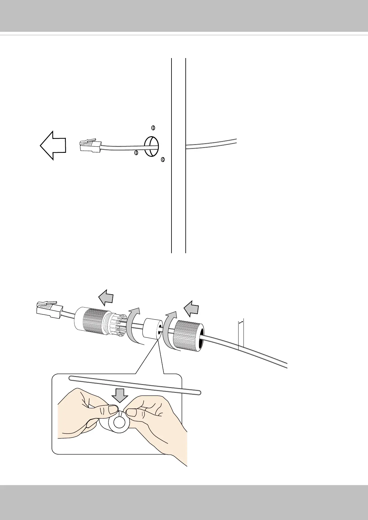 6. Pass an Ethernet cable through the waterproof cable gland components, and through