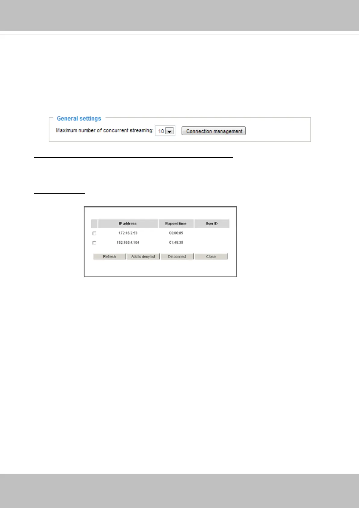 ■ IP address: Current connections to the Network Camera.