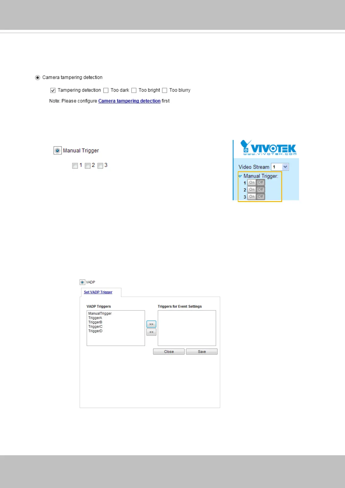 This option allows the Network Camera to trigger when the camera detects that is is being tampered
