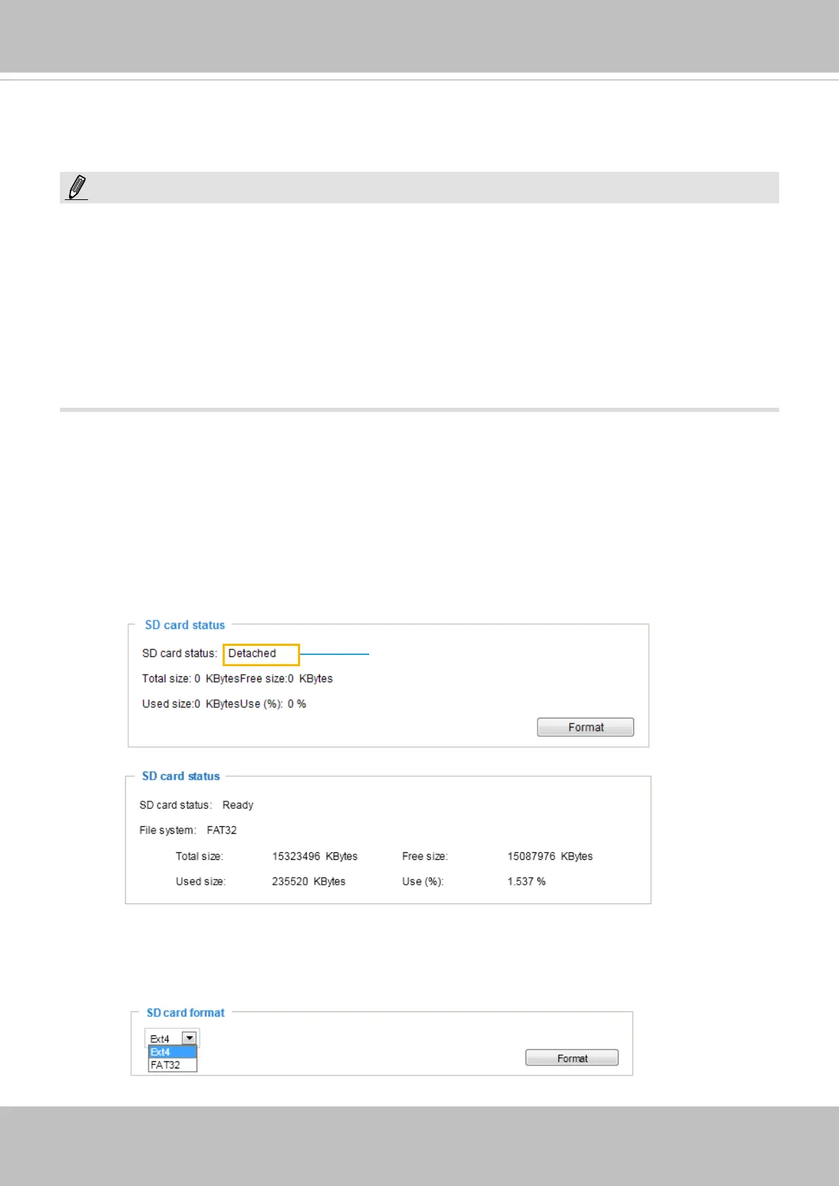 This section explains how to manage the local storage on the Network Camera. Here you can