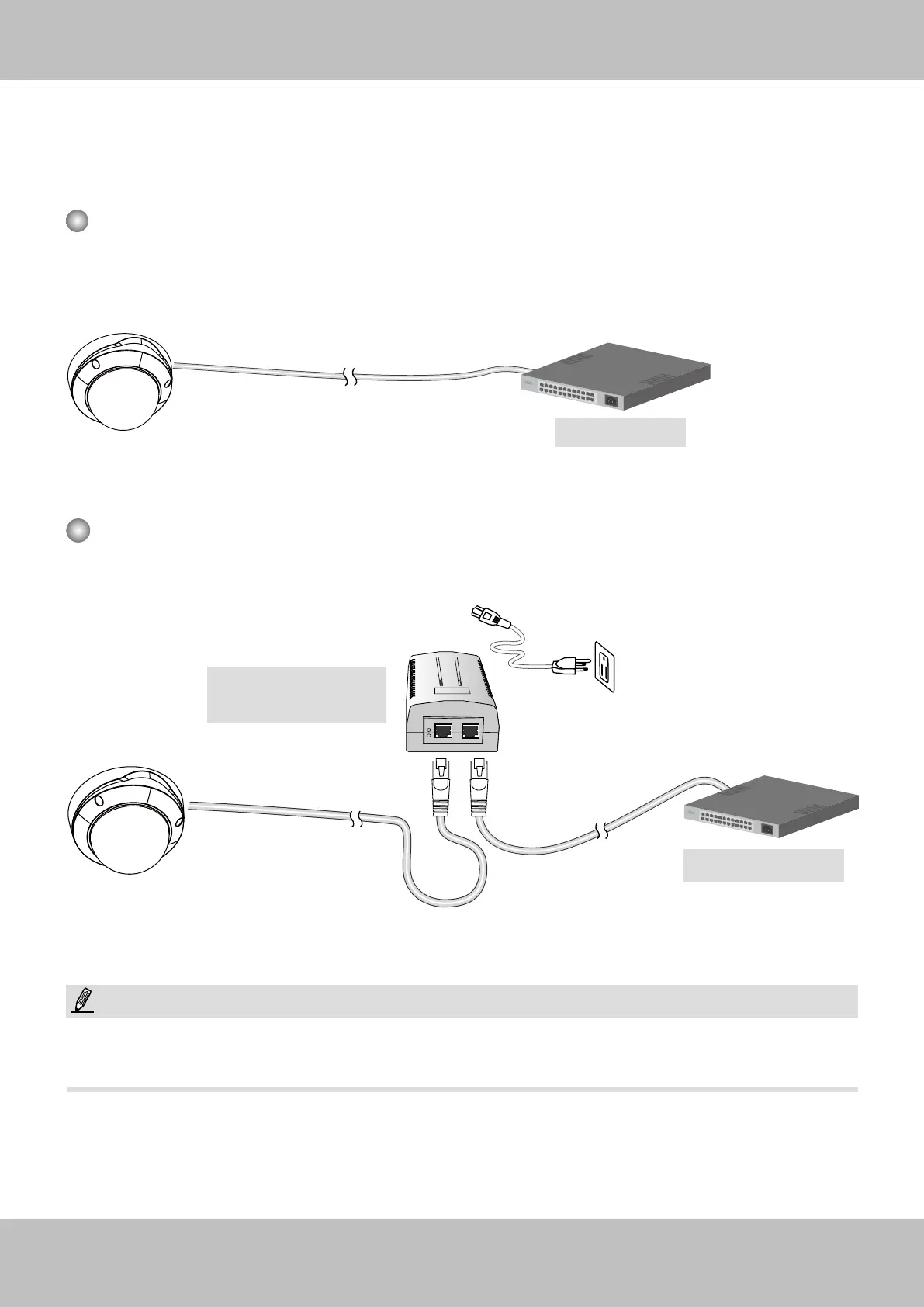 Use a PoE power injector (optional) to connect between the Network Camera and a non-