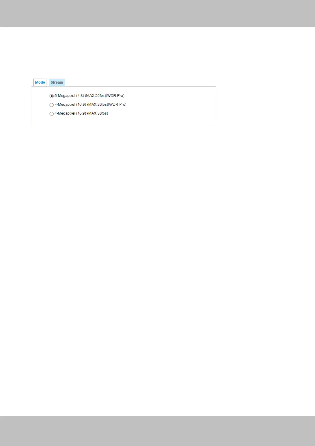 ■ 5MP (max. 20fps)(WDR Pro): This is the full resolution at 5 megapixels in a 4:3 screen aspect