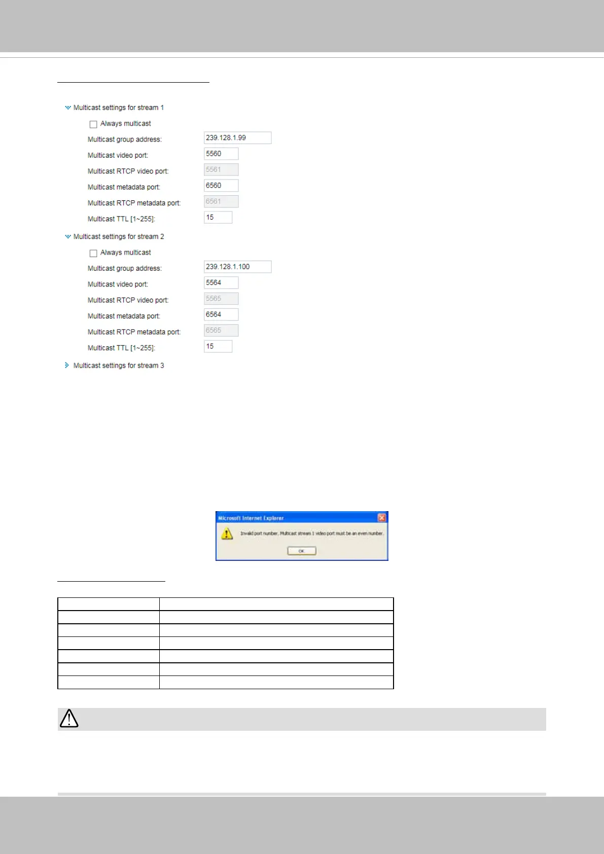 If the multicast RTP video ports are incorrectly assigned, the following warning message will be